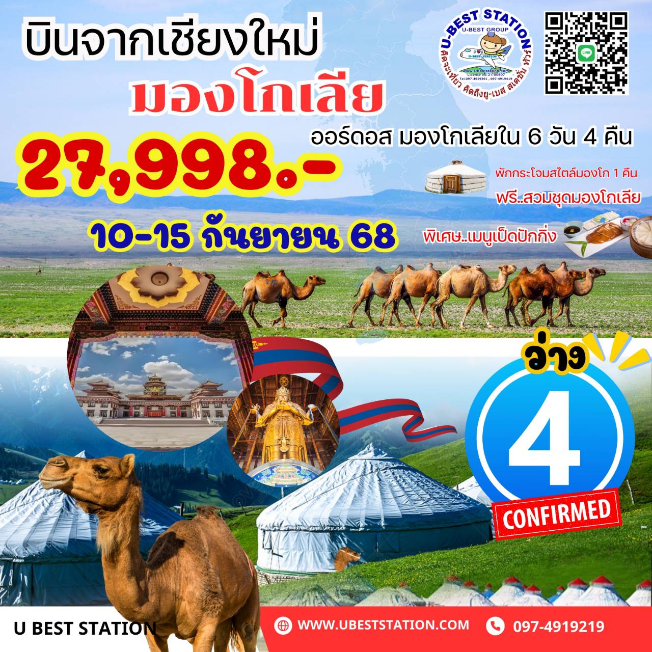 มองโกเลียใน6วัน4คืน พีเรียด 10-15 กย เพียง 27998.-