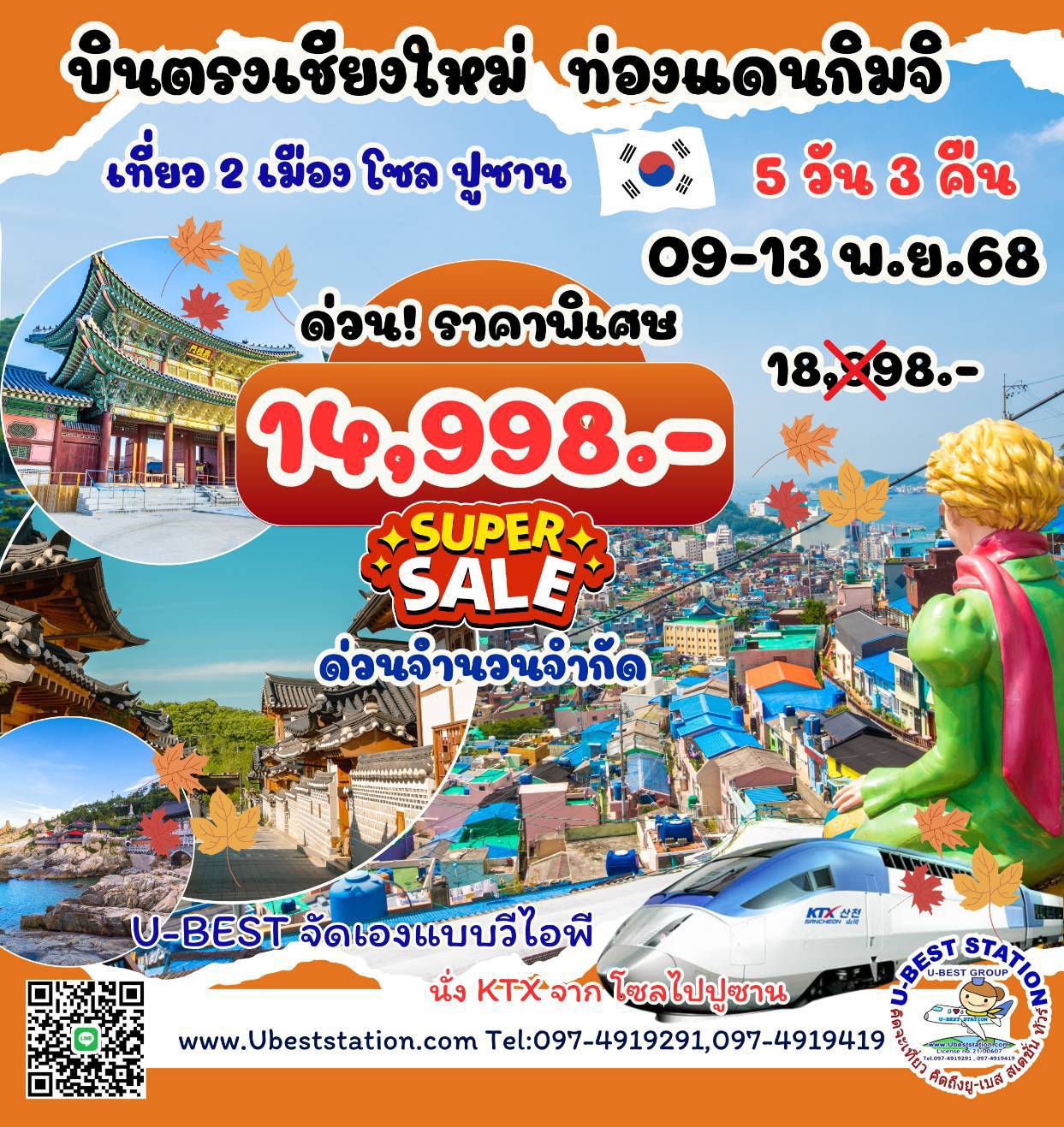 ปูซาน โซล เที่ยว 2เมืองนั่งรถไฟความเร็วสูง เกาหลีใต้บินตรงเชียงใหม่ 5 วัน3คืน พีเรียดบิน พย. เพียง 1