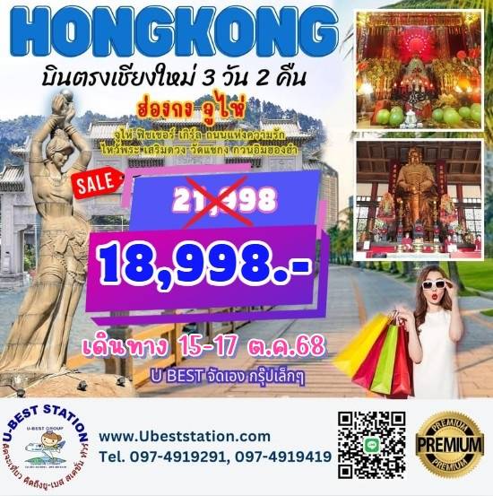 ฮ่องกงบินตรงเชียงใหม่ 3 วัน2คืน 15-17ตุลาเพียง 18,998.-