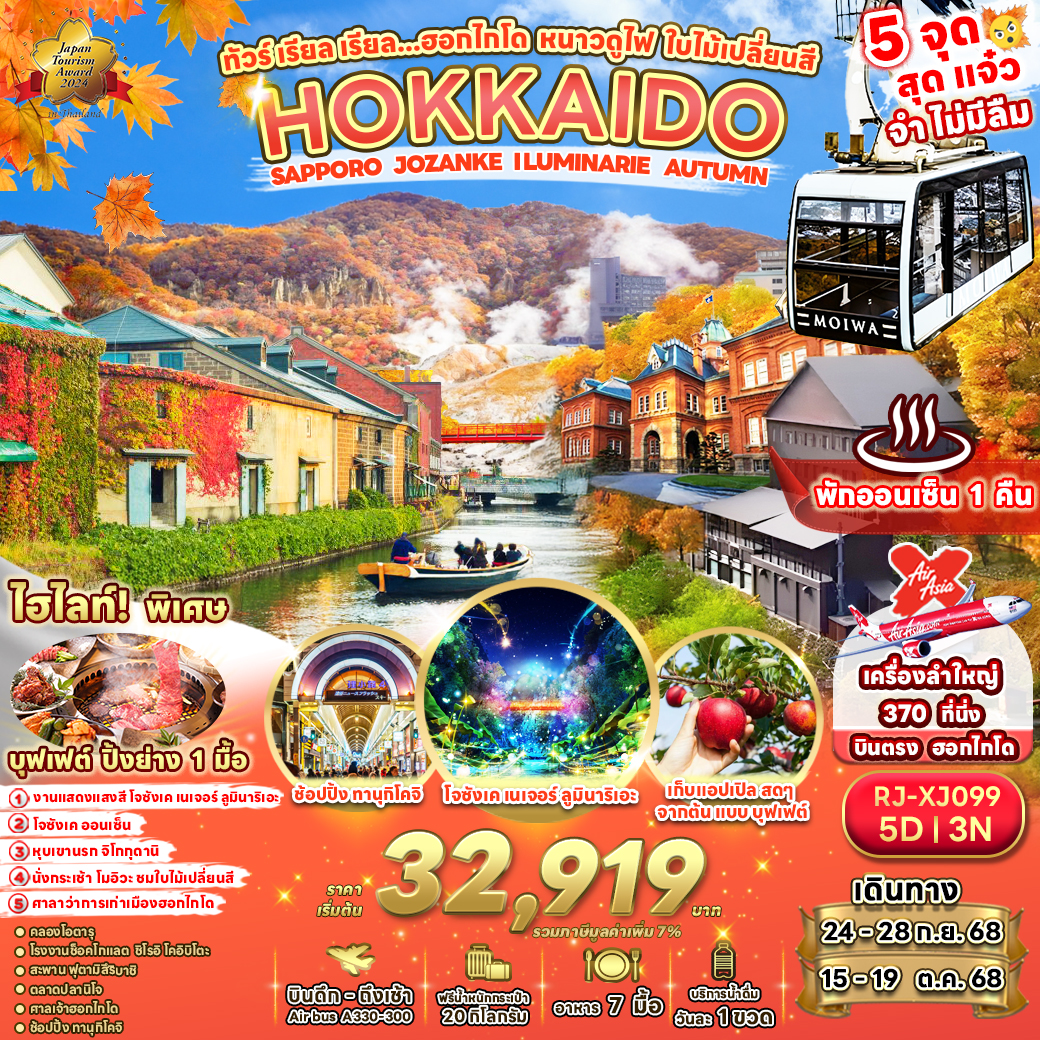 ฮอกไกโด กับ 5จุดเชคอิน 5วัน3คืน กันยายน-ตุลาคม25เพียง 32919.-