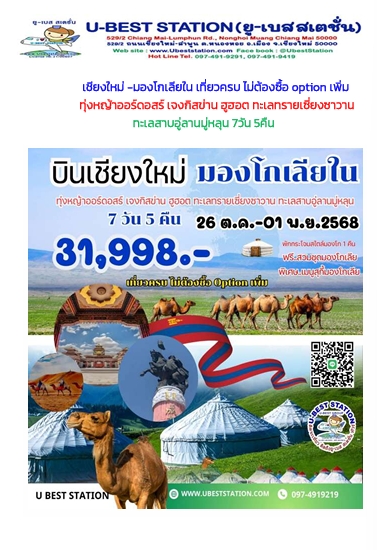 มองโกเลียใน7วัน5คืน พีเรียด 26 ตค-01 พย เพียง 31998.-