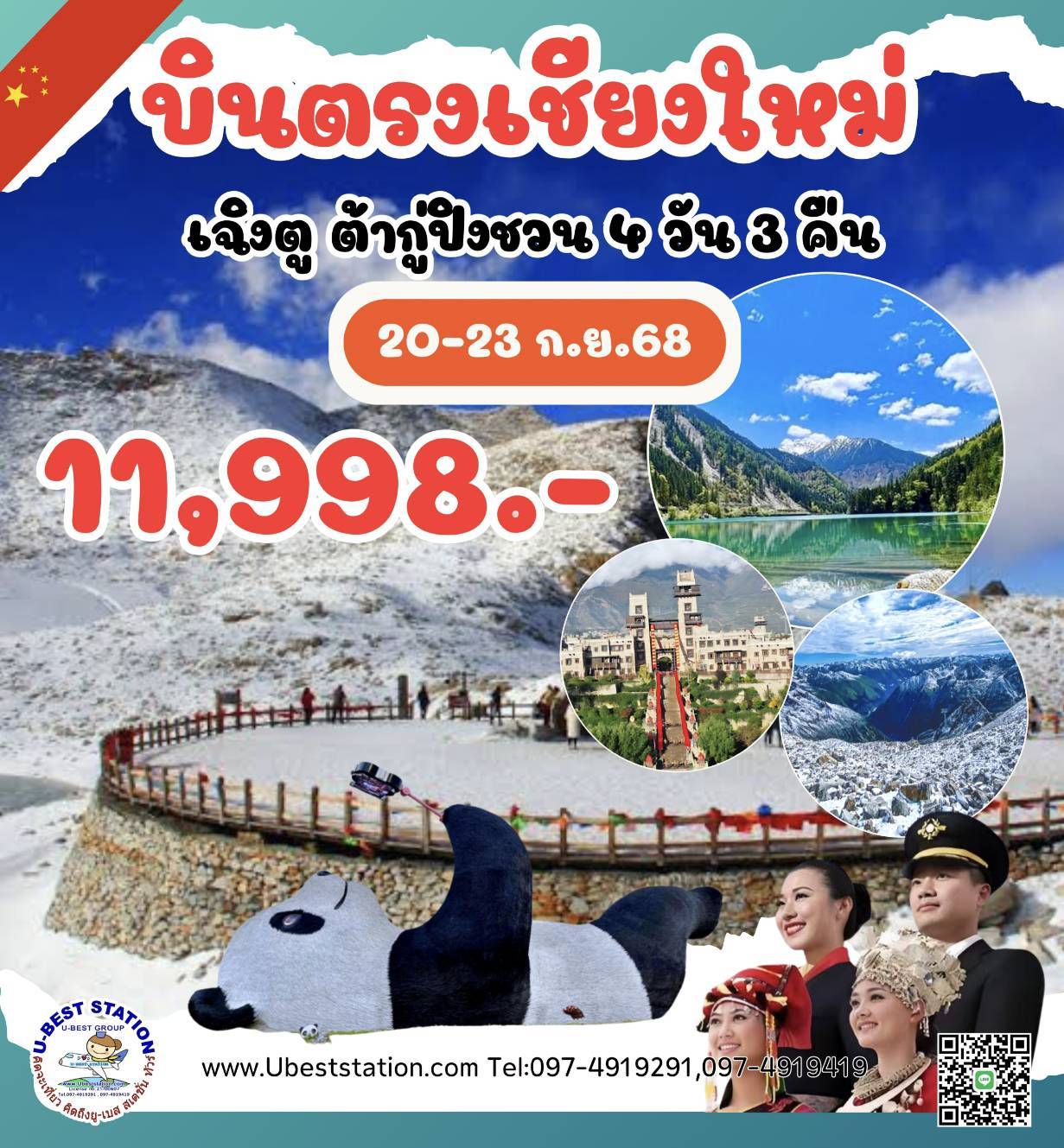 เฉิงตูบินตรงเชียงใหม่ 4วัน3คืน พีเรียด 20-23กันยาเพียง 11998.-