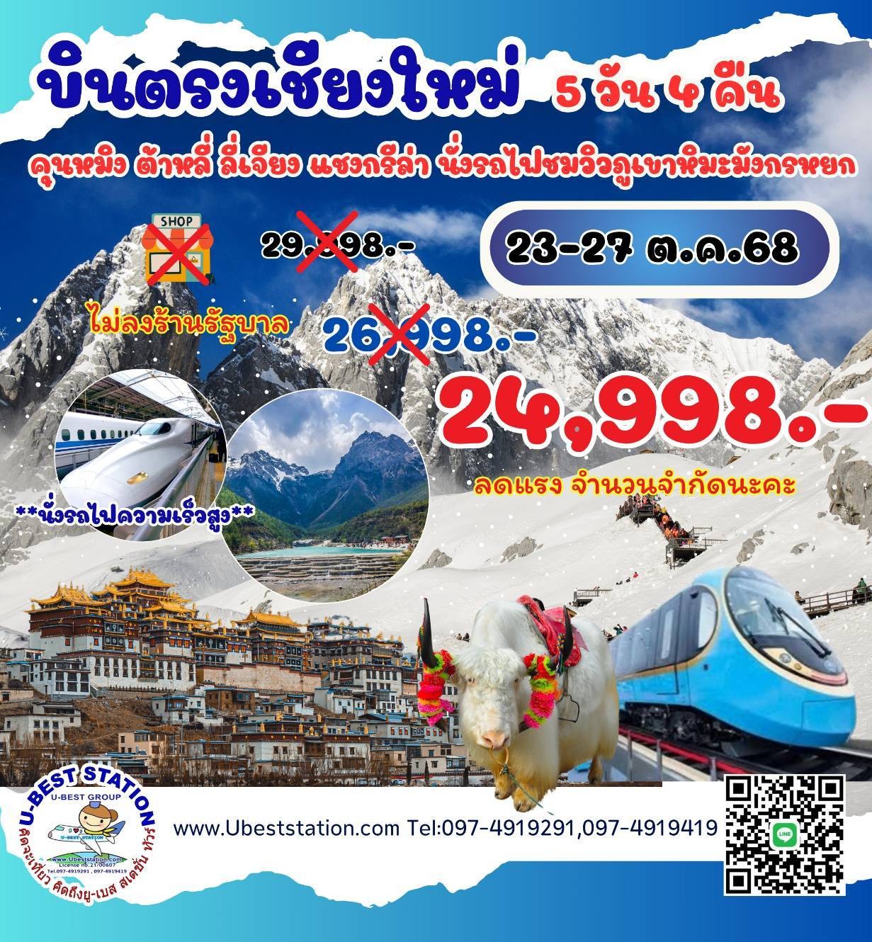 เชียงใหม่คุนหมิง ต้าหลี่ ลี่เจียง นั่งรถไฟชมวิวภูเขาหิมะมังกรหยก 5วัน4คืน เพียง 24,998.-
