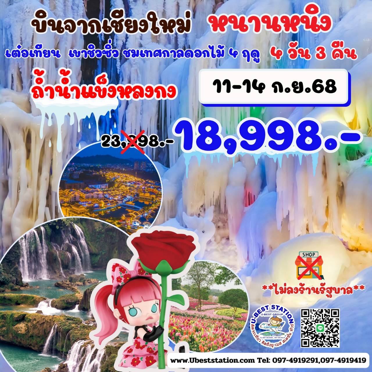 หนานหนิง น้ำตกเต๋อเทียน ถ้ำน้ำแข็งหลงกง เขาชิงซิ๋ว ชมเทศกาลดอกไม้สี่ฤดู 4 วัน 3 คืน **ไม่ลงร้าน*11-1