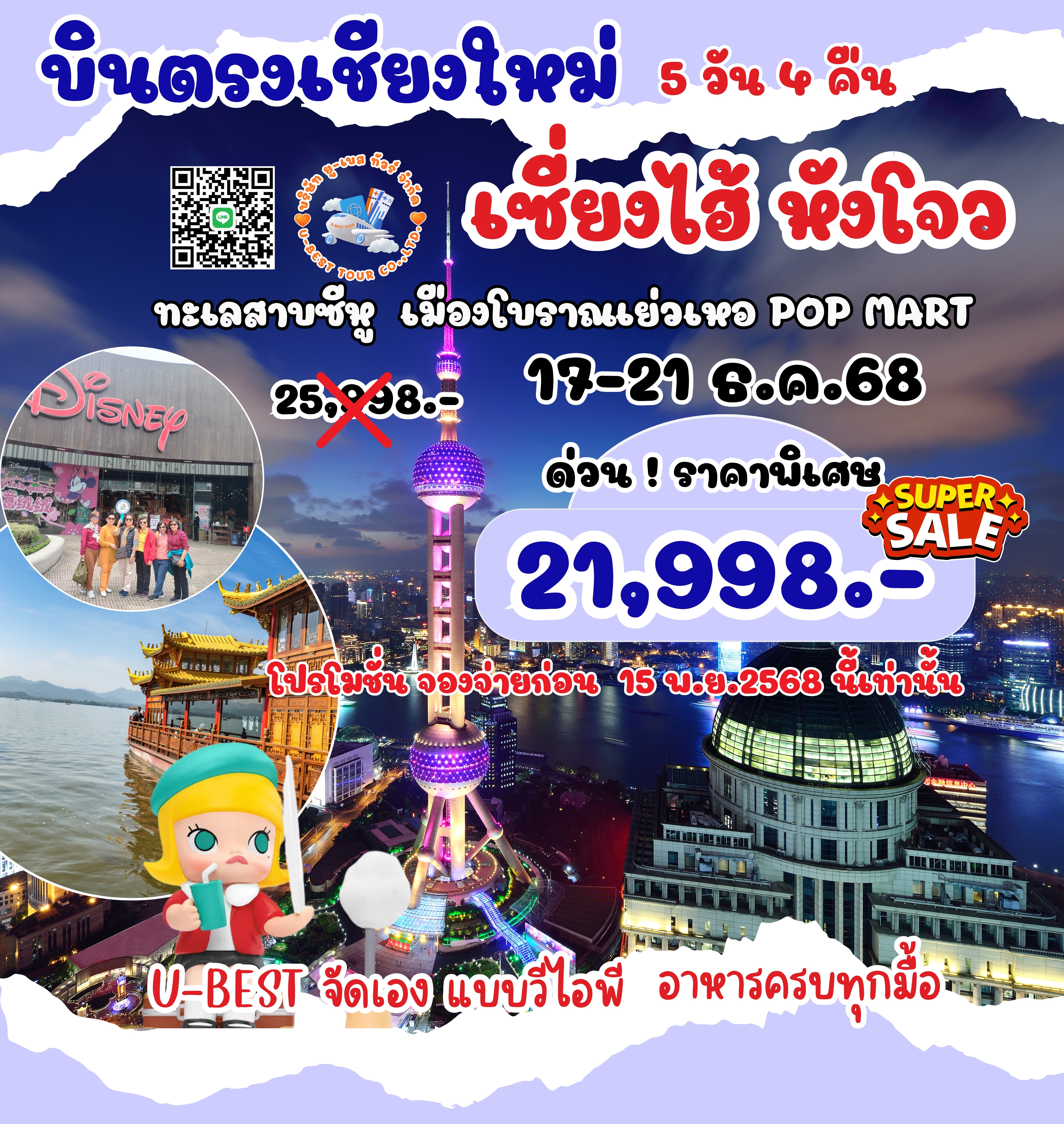 เชียงใหม่เซี่ยงไฮ้หังโจว 17-21 ธค กรุ๊ปเล็ก 5วัน4คืนเพียง 21,998.