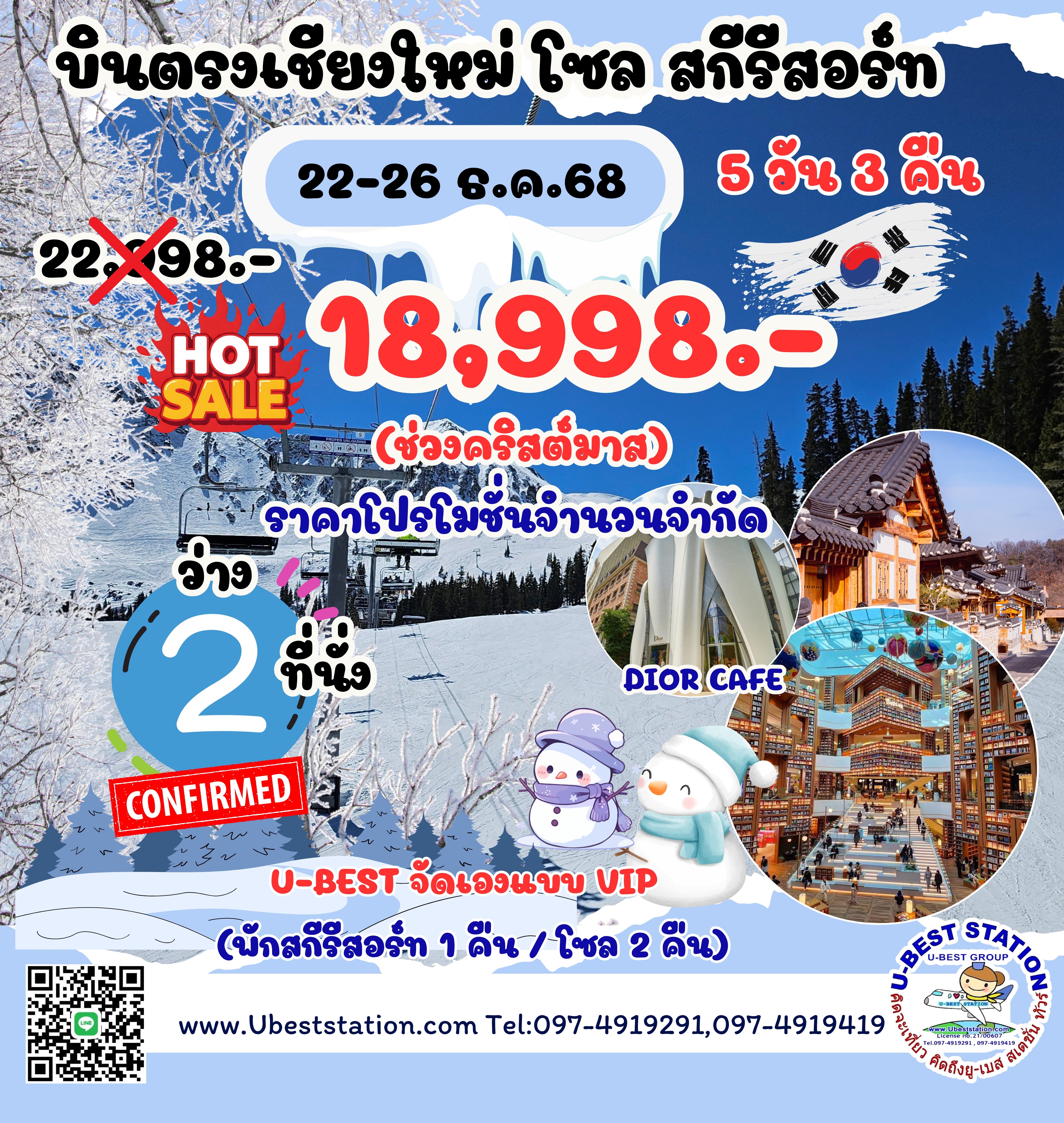 เกาหลีบินตรงเชียงใหม่ คริสมาส 22-26ธ.ค.25 กรุ๊ปเล็กรับได้ 5ที่สุดท้ายเพียง 18,998.-